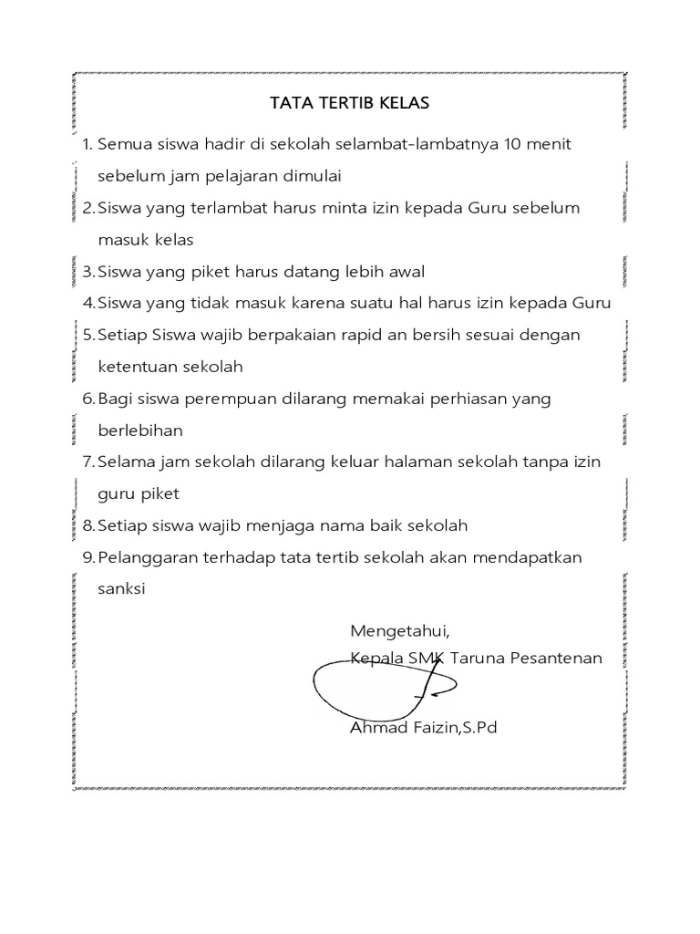 Contoh Tata Tertib Kelas Untuk Guru Dan Wali Kelas Tampilan Menarik Administrasi Sekolah Tata Tertib Kelas